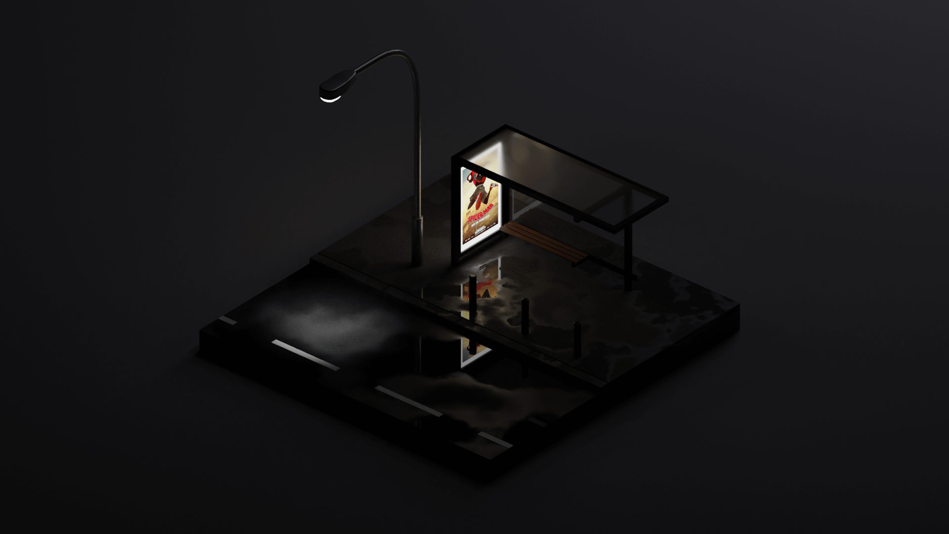 Bus stop in the rainy night