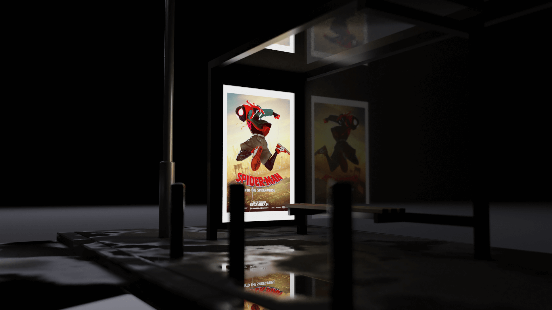 Bus stop in the rainy night